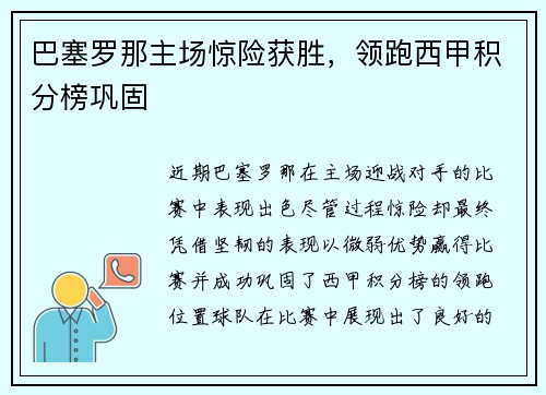 巴塞罗那主场惊险获胜,领跑西甲积分榜巩固
