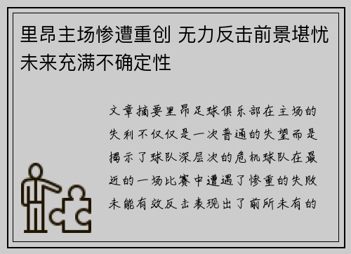 里昂主场惨遭重创 无力反击前景堪忧未来充满不确定性