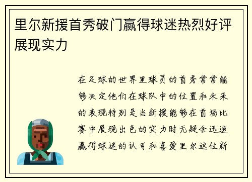 里尔新援首秀破门赢得球迷热烈好评展现实力