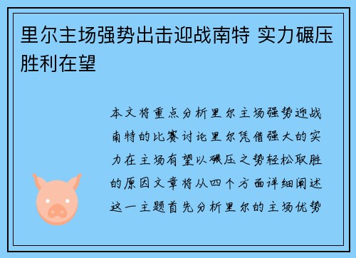 里尔主场强势出击迎战南特 实力碾压胜利在望