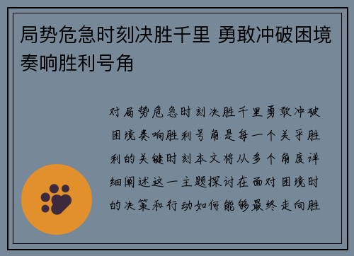 局势危急时刻决胜千里 勇敢冲破困境奏响胜利号角