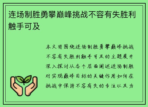 连场制胜勇攀巅峰挑战不容有失胜利触手可及