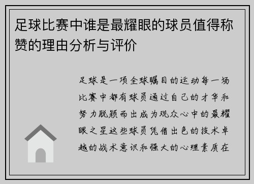 足球比赛中谁是最耀眼的球员值得称赞的理由分析与评价