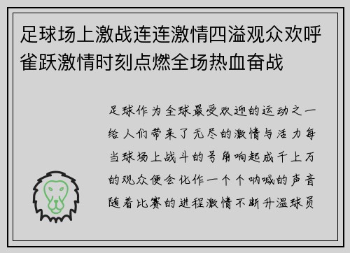 足球场上激战连连激情四溢观众欢呼雀跃激情时刻点燃全场热血奋战