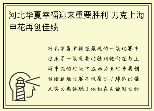 河北华夏幸福迎来重要胜利 力克上海申花再创佳绩