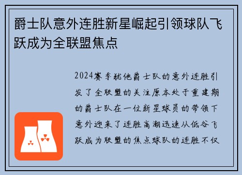 爵士队意外连胜新星崛起引领球队飞跃成为全联盟焦点