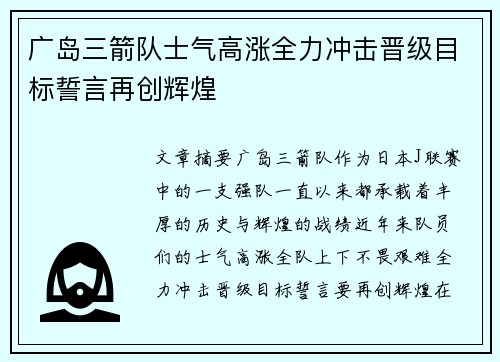 广岛三箭队士气高涨全力冲击晋级目标誓言再创辉煌